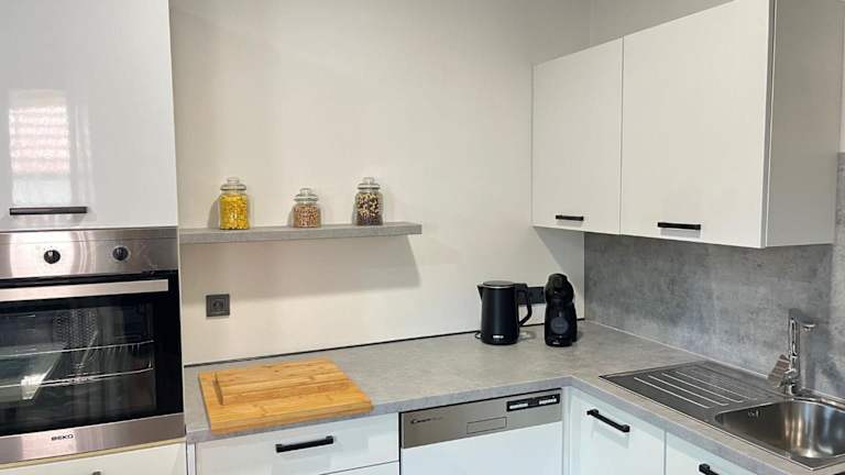 Das Apartment verfügt über 2 komfortable Schlafzimmer, in denen Sie sich nach einem langen Tag entspannen können. Die Küche ist mit einem Kühlschrank und einem Geschirrspüler ausgestattet, so dass Sie Ihre eigenen Mahlzeiten zubereiten können. Der Flachbild-TV und der gemütliche Sitzbereich bieten Unterhaltung und Komfort. Das moderne Badezimmer verfügt über eine Badewanne oder Dusche. Handtücher und Bettwäsche werden gestellt.