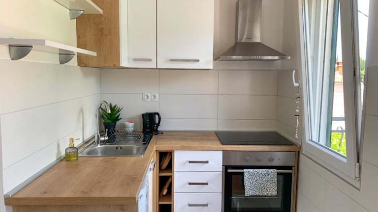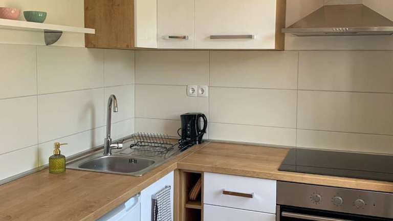 Die Ferienwohnung umfasst zwei Schlafzimmer und ein Wohnzimmer. Zur Ausstattung gehört ein Flachbild-TV und eine gut ausgestattete Küche mit Kühlschrank und Ofen. Das Badezimmer ist mit einer Badewanne oder Dusche ausgestattet. Handtücher und Bettwäsche werden bereitgestellt.