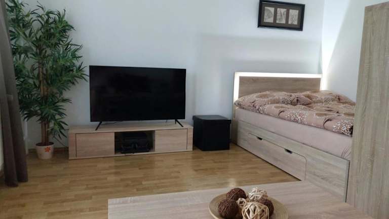 Die Ferienwohnung beinhaltet ein Schlafzimmer und ein Badezimmer. Zur Ausstattung gehören Bettwäsche, Handtücher, ein Flachbild-TV mit Kabelkanälen, ein Essbereich sowie eine voll ausgestattete Küche. Ein Balkon mit Gartenblick ist ebenfalls vorhanden.