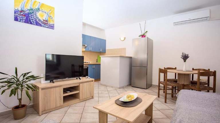 Die Ferienwohnung umfasst zwei Schlafzimmer und ein Wohnzimmer. Sie ist mit einer voll ausgestatteten Küche, die einen Kühlschrank und einen Wasserkocher beinhaltet, ausgestattet. Ein Badezimmer mit Dusche und kostenlosen Pflegeprodukten sowie Handtücher und Bettwäsche sind ebenfalls Teil der Ausstattung. Klimaanlage ist ebenfalls vorhanden.