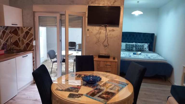 Das Apartment verfügt über eine voll ausgestattete Küche, so dass die Gäste ihre eigenen Mahlzeiten zubereiten können. Alternativ können sie auch die Restaurants in der Nähe besuchen, darunter den alten Bazar Kujundziluk, der eine Vielzahl von kulinarischen Optionen bietet.