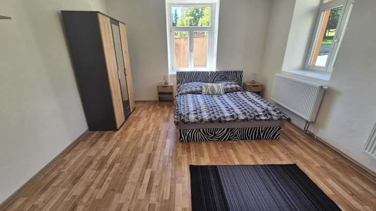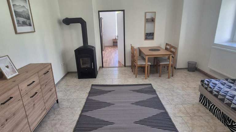 Das Apartmán pro 4 osoby, Vejprty ist eine Ferienwohnung für bis zu vier Personen. Die Unterkunft bietet eine Küche und ist eine Nichtraucherunterkunft. Es sind keine Junggesellen- oder Junggesellinnenabschiede oder ähnliche Feiern gestattet, und es besteht eine Altersgrenze von 18 Jahren für den Check-in. Haustiere sind erlaubt, wobei eventuell zusätzliche Gebühren anfallen können.