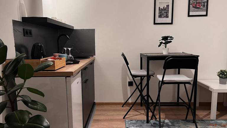 Die Ferienwohnung ist mit 1 Schlafzimmer ausgestattet und verfügt über eine Küche mit Kühlschrank und Minibar. Ein Flachbild-TV, ein Sitzbereich sowie ein Badezimmer mit Dusche sind ebenfalls vorhanden. Handtücher und Bettwäsche werden bereitgestellt.