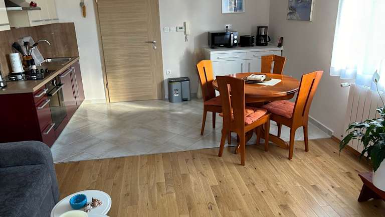 Das Apartman Roža bietet gemütliche Unterkünfte mit einem schönen Gartenblick. Das klimatisierte Apartment verfügt über ein Schlafzimmer, einen Wohnbereich, eine voll ausgestattete Küche und eine Terrasse. Die Unterkunft liegt in der Nähe des Stadions Rujevica HNK Rijeka und bietet kostenfreie Parkplätze. Entdecken Sie die Höhlen von Škocjan und besuchen Sie das See- und Geschichtsmuseum des kroatischen Küstenlandes und das Kroatische Nationaltheater Ivan Zajc in der Nähe. Der Flughafen Rijeka ist ebenfalls gut erreichbar.