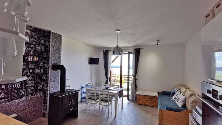 Das Apartmán s terasou a výhledem na jezero Lipno in Kovářov ist die perfekte Unterkunft für alle, die einen erholsamen Aufenthalt mit Seeblick suchen. Das Apartment bietet modernen Komfort, kostenfreies WLAN und kostenlose Privatparkplätze. Entdecken Sie die Schönheit von Český Krumlov und der Umgebung, während Sie in diesem gemütlichen Apartment entspannen.