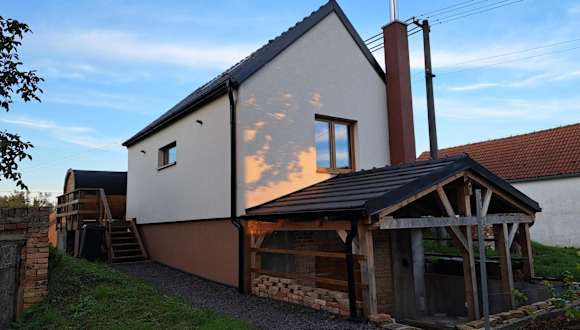Das Ferienhaus Apartmán se saunou a vinný sklep Živjeli bietet Übernachtungsmöglichkeiten in einer ansprechenden Umgebung mit Gemeinschaftslounge und Terrasse sowie kostenlosem WLAN.