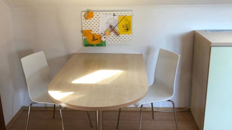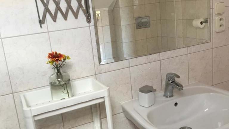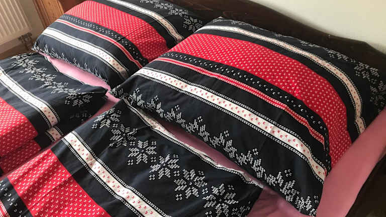 Die Ferienwohnung umfasst zwei Schlafzimmer, ein Wohnzimmer und eine voll ausgestattete Küche mit Kühlschrank und Kaffeemaschine. Das Badezimmer ist mit einer Dusche und einem Haartrockner ausgestattet. Handtücher und Bettwäsche werden bereitgestellt.