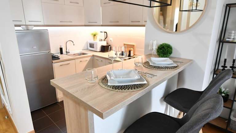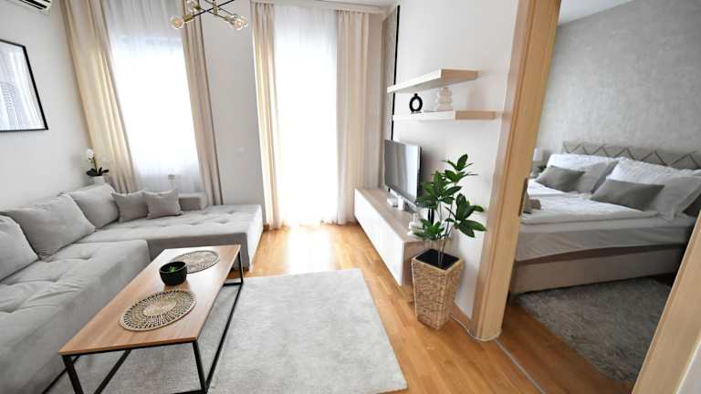 Das klimatisierte Apartment im Apartman SUN bietet einen Balkon mit Stadtblick. Es verfügt über ein Schlafzimmer, ein gemütliches Wohnzimmer und eine voll ausgestattete Küche mit Kühlschrank und Geschirrspüler. Das Badezimmer ist mit einer Badewanne oder Dusche ausgestattet. Handtücher und Bettwäsche werden gestellt, um Ihren Aufenthalt so angenehm wie möglich zu gestalten.