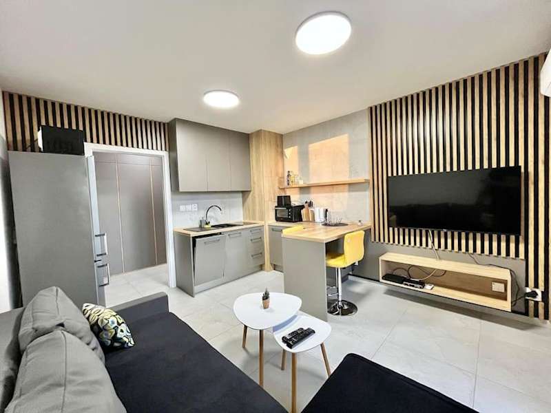 Die Ferienwohnung umfasst ein Schlafzimmer, ein Wohnzimmer und ein Badezimmer mit Dusche. Zur Ausstattung gehören ein Flachbild-TV sowie eine gut ausgestattete Küche mit Kühlschrank und Geschirrspüler. Handtücher und Bettwäsche werden bereitgestellt.