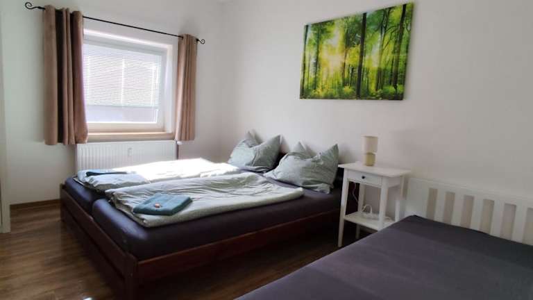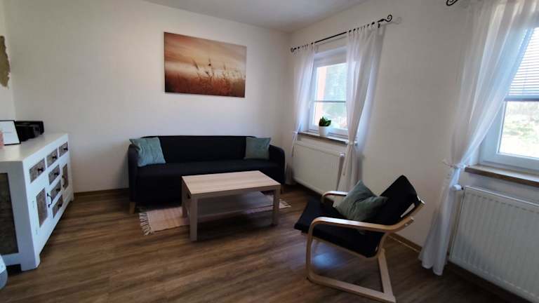 Die Ferienwohnung verfügt über zwei Schlafzimmer, eine voll ausgestattete Küche mit Kühlschrank und Ofen sowie ein Badezimmer mit Dusche und Haartrockner. Handtücher und Bettwäsche werden vor Ort bereitgestellt.