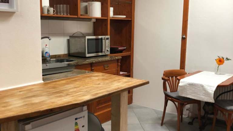 Die Ferienwohnung verfügt über ein Schlafzimmer, ein Wohnzimmer mit einem Flachbild-TV sowie eine voll ausgestattete Küche, die alle notwendigen Annehmlichkeiten für einen angenehmen Aufenthalt bietet.