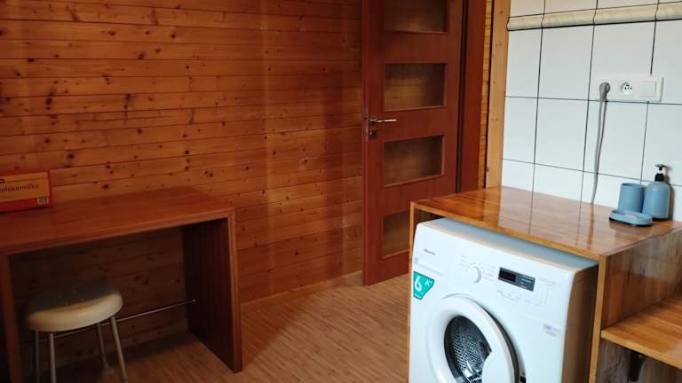 Apartmán v dřevěném domě bietet Übernachtungsmöglichkeiten in einem hölzernen Bauwerk, ausgestattet mit modernen Annehmlichkeiten, und umfasst einen Garten sowie kostenlose Fahrräder. Die Ferienwohnung ist speziell gestaltet, um Gästen eine angenehme und komfortable Atmosphäre zu bieten.