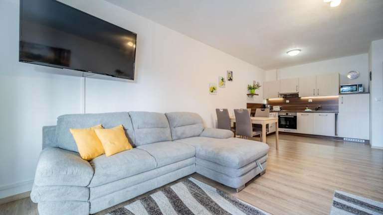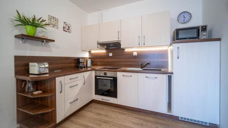 Das Apartment Riviera 510-8 Lipno Home bietet ein komfortables und gut ausgestattetes Apartment für Ihren Aufenthalt. Das Apartment verfügt über ein Schlafzimmer, ein Wohnzimmer und eine Terrasse mit Seeblick. Zur Ausstattung gehören ein Flachbild-TV, eine Küchenzeile mit Kühlschrank und Backofen sowie ein Badezimmer mit Dusche. Handtücher und Bettwäsche werden gestellt, um Ihren Aufenthalt so angenehm wie möglich zu machen.