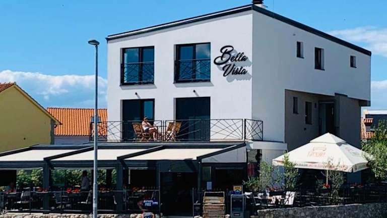 Apartmani Bella Vista bietet Übernachtungsmöglichkeiten mit einer Terrasse, kostenlosem Privatparkplatz, einem Restaurant und einer Bar. Die Unterkunft umfasst zudem einen Geldautomaten und einen Währungsumtausch für die Gäste.