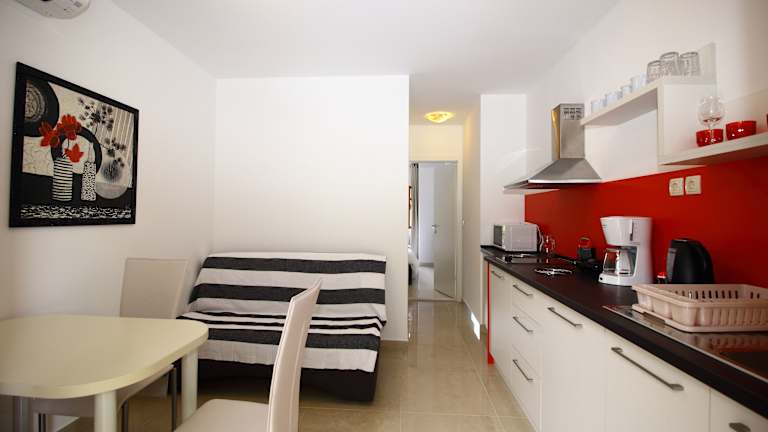 Die Apartments in den Apartmani Dub sind klimatisiert und verfügen über eine komplett ausgestattete Küche mit Mikrowelle. Ein gemütlicher Sitzbereich mit Sat-TV und kostenloses WLAN sind ebenfalls vorhanden. Die meisten Zimmer verfügen über einen Balkon. Im Badezimmer finden Sie eine Dusche und einen Haartrockner.