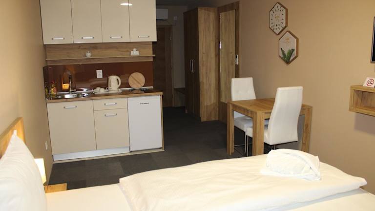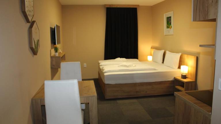 Die Zimmer im Hotel Kakanj verfügen über ein eigenes Badezimmer und sind mit einem Schreibtisch und einem Flachbild-TV ausgestattet. Ausgewählte Zimmer sind zusätzlich mit einer Küche ausgestattet, die einen Kühlschrank, einen Geschirrspüler und einen Ofen beinhaltet. In allen Zimmern sind Bettwäsche und Handtücher vorhanden.