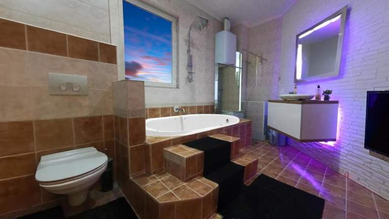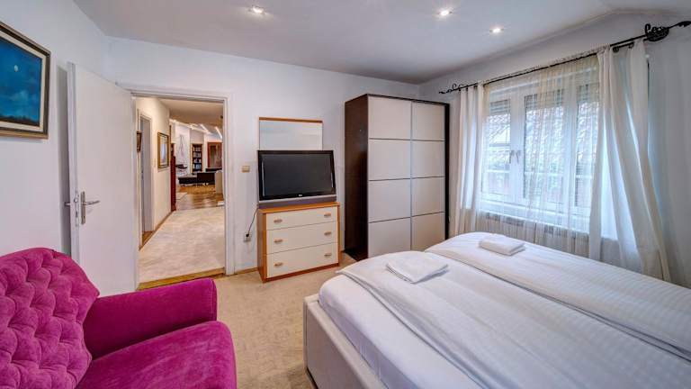 Das Apartment im Rose Apartmani Pančevo ist geräumig und bietet allen Komfort, den man für einen angenehmen Aufenthalt benötigt. Es verfügt über eine gut ausgestattete Küche mit Kühlschrank, Geschirrspüler und Backofen sowie ein gemütliches Wohnzimmer mit einem Sitzbereich und einem Essbereich. Es gibt zwei Schlafzimmer und ein Badezimmer mit Dusche und Whirlpool. Handtücher und Bettwäsche werden gestellt. Vom Apartment aus hat man einen schönen Blick auf den Garten.