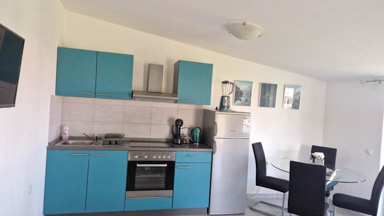 Die Apartments im Apartmani Tereza bieten allen Komfort, den Sie für einen angenehmen Aufenthalt benötigen. Jedes Apartment verfügt über einen Balkon mit Blick auf den Garten, ideal zum Entspannen und Genießen der frischen Luft. Im Inneren finden Sie einen gemütlichen Sitzbereich und einen Flachbild-Sat-TV für Ihre Unterhaltung. Die voll ausgestattete Küche bietet Ihnen die Möglichkeit, Ihre eigenen Mahlzeiten zuzubereiten, und das private Badezimmer verfügt über eine Dusche und einen Haartrockner. Kostenloses WLAN und Klimaanlage sorgen für zusätzlichen Komfort.