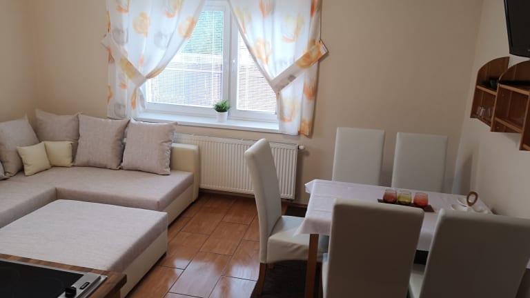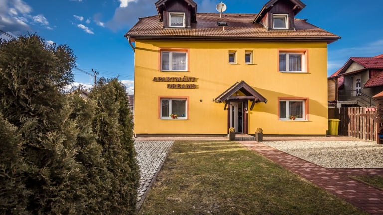 Das Apartmány Dreams bietet eine entspannte Atmosphäre mit einem Garten und einer überdachten Sommerterrasse, ausgestattet mit Grillmöglichkeiten und einer Dartscheibe. Die Unterkunft ist ideal für Familien, mit einem Kinderspielplatz für die kleinen Gäste. Die Besucher können kostenlos den Privatparkplatz nutzen und WLAN steht in allen Bereichen zur Verfügung. Es sind keine Junggesellenabschiede oder ähnliche Feiern erlaubt.