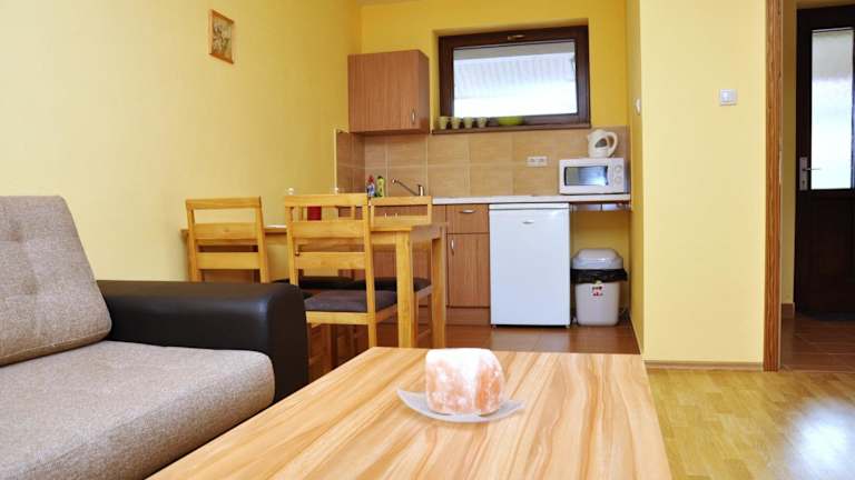 Das Apartmány Forró bietet Selbstversorger-Unterkünfte, sodass die Gäste ihre eigenen Mahlzeiten zubereiten können. In der Umgebung gibt es jedoch auch Restaurants und Cafés, in denen man lokale Spezialitäten genießen kann.