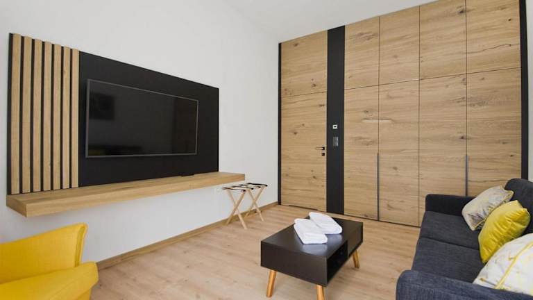Die Apartments im Apartmány Lacov Dom bieten allen Komfort, den Sie für einen angenehmen Aufenthalt benötigen. Jedes Apartment verfügt über eine Terrasse mit Poolblick, einen gemütlichen Sitzbereich, einen Flachbild-Sat-TV und eine voll ausgestattete Küche mit Kühlschrank, Geschirrspüler, Mikrowelle, Minibar, Kochfeld, Kaffeemaschine und Wasserkocher. Das private Badezimmer ist mit einer Whirlpool-Badewanne, einem Bidet und kostenfreien Pflegeprodukten ausgestattet.