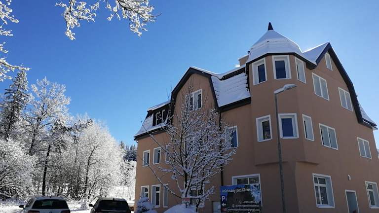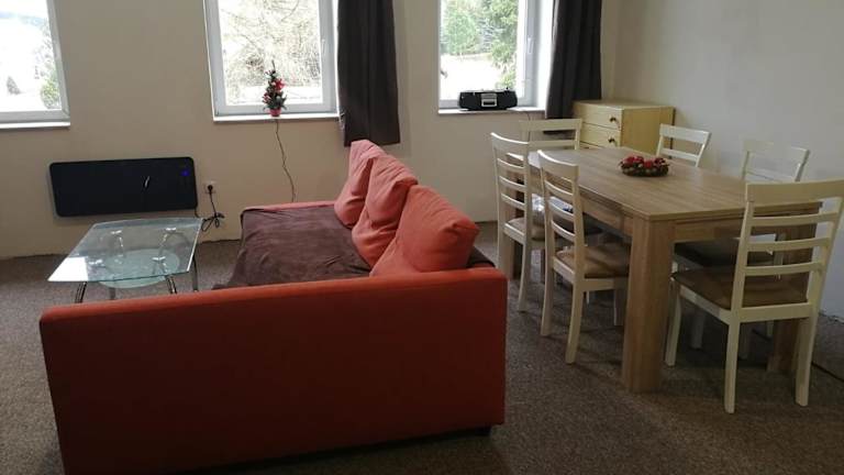 Das Apartmány pod Klínovcem liegt in České Hamry, nur 13 km vom Fichtelberg entfernt. Die Region Usti nad Labem ist bekannt für ihre malerische Landschaft und bietet zahlreiche Möglichkeiten zum Skifahren und Radfahren. Die Mühlenkolonnade und die Marktkolonnade sind ebenfalls einen Besuch wert und befinden sich jeweils etwa 39 km entfernt. Der internationale Flughafen Karlsbad ist nur 43 km entfernt, so dass die Anreise zum Hotel bequem ist.