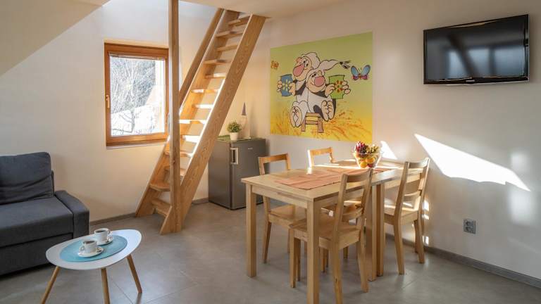 Apartmány pro rodiny s dětmi - Permoník bietet Übernachtungsmöglichkeiten in einer familienfreundlichen Atmosphäre. Die Unterkunft verfügt über Annehmlichkeiten wie einen Garten, eine Gemeinschaftslounge, eine Terrasse und eine Bar. Kostenloses WLAN ist ebenfalls verfügbar.
