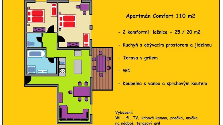 Die Suiten im Apartmány u Honzy bieten Ihnen viel Platz und Komfort. Jede Suite verfügt über einen gemütlichen Sitzbereich mit Sat-TV, ideal zum Entspannen nach einem ereignisreichen Tag. Das Bad ist mit einer Dusche ausgestattet. Kostenloses WLAN steht Ihnen in den Suiten zur Verfügung, sodass Sie jederzeit mit Ihren Lieben in Verbindung bleiben können.