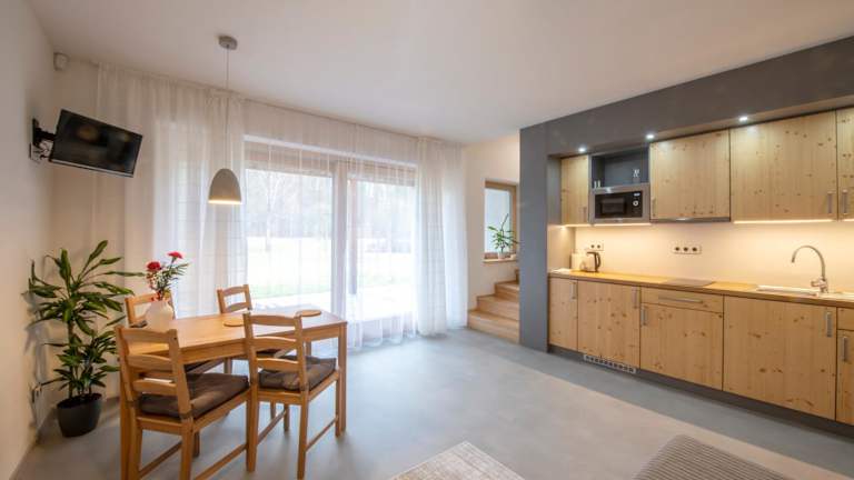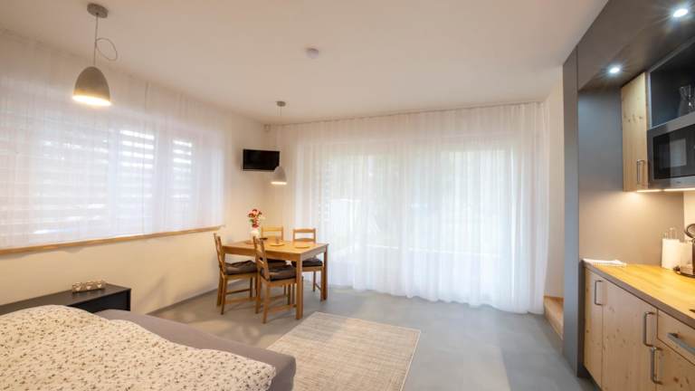 Die Zimmer sind mit einem Sitzbereich ausgestattet und verfügen über einen Satelliten-Flachbild-TV. Zudem gibt es eine voll ausgestattete Küchenzeile mit einem Kühlschrank, einer Mikrowelle, einer Herdplatte und einem Wasserkocher. Jedes Zimmer ist mit einem eigenen Badezimmer mit Dusche und kostenlosen Pflegeprodukten versehen.