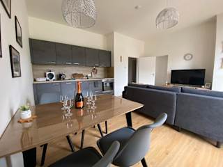 Die Wohneinheiten sind mit einem Flachbild-TV und einer voll ausgestatteten Küche ausgestattet. Zu den Küchengeräten gehören ein Kühlschrank, ein Ofen, eine Kaffeemaschine, eine Mikrowelle, eine Herdplatte, ein Toaster und ein Wasserkocher.