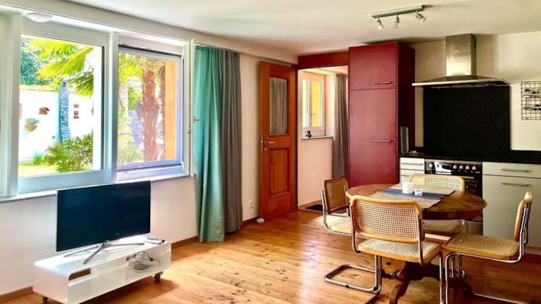 Die Unterkunft 1,5 Zimmer Ferienwohnung bietet einen Garten mit Bergblick. Kostenloses WLAN steht in der gesamten Unterkunft zur Verfügung. Ein Privatparkplatz ist ebenfalls vor Ort vorhanden.