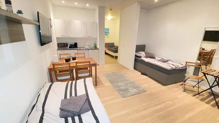 Das Comfortable workers apartment verfügt über ein gemütliches Schlafzimmer mit bequemen Betten für eine erholsame Nachtruhe. Die Küchenzeile ist mit einem Kühlschrank und einer Mikrowelle ausgestattet, so dass Sie Ihre eigenen Mahlzeiten zubereiten können. Das Apartment verfügt auch über einen Flachbild-TV und einen komfortablen Sitzbereich. Handtücher und Bettwäsche werden gestellt, um Ihren Aufenthalt so angenehm wie möglich zu gestalten.