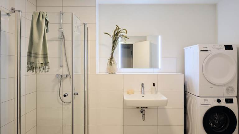 Die Ferienwohnung besteht aus zwei Schlafzimmern, einem Wohnzimmer und einer voll ausgestatteten Küche, die einen Kühlschrank und eine Kaffeemaschine beinhaltet. Des Weiteren gibt es zwei Badezimmer mit Dusche und Haartrockner. Handtücher und Bettwäsche werden bereitgestellt. Die Unterkunft ist rauchfrei und bietet Annehmlichkeiten wie Heizung und Gartenmöbel.