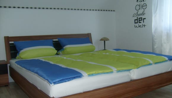 Dieses geräumige Apartment genießt eine ruhige Lage im Winzerdorf Bechenheim in der malerischen Region Rheinhessen. Freuen Sie sich im Apartment Adam auf die kostenfreie Nutzung von WLAN und Parkplätzen. Das Apartment Adam befindet sich in der 1. Etage eines Einfamilienhauses, in dem auch der Eigentümer wohnt, und bietet Ihnen ein helles und modernes Ambiente. Es verfügt über eine voll ausgestattete Küche, einen Flachbild-TV mit Sky-Kanälen und einen Balkon mit Gartenblick. Sie können sich gern auf der Gartenterrasse entspannen oder die Grillmöglichkeiten nutzen. Zu den weiteren Annehmlichkeiten gehören ein Leseraum mit einem Sessel und einer großen Auswahl an Büchern. Das Apartment eignet sich hervorragend als Ausgangspunkt für Wanderungen und Radtouren durch die umliegende Hügellandschaft. Bechenheim liegt auf einer Höhe von 300 m und ist von Wäldern und Wiesen umgeben. Sie wohnen im Apartment Adam 10 km vom Bahnhof Alzey und 20 km von der Kurstadt Bad Kreuznach entfernt. Vom Flughafen Frankfurt trennen Sie 65 km.