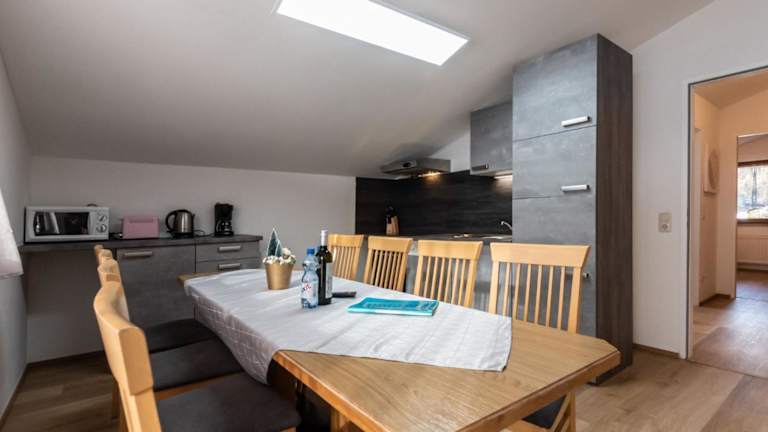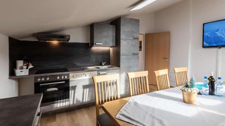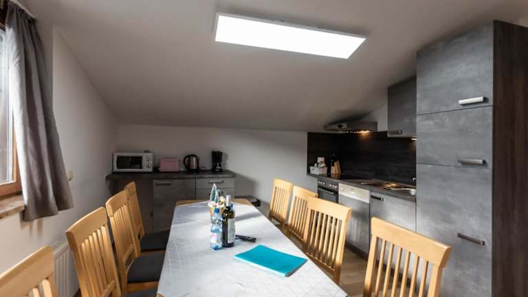 Die Ferienwohnung verfügt über 4 Schlafzimmer, eine gut ausgestattete Küche mit Kühlschrank und Geschirrspüler sowie 2 Badezimmer mit Dusche.