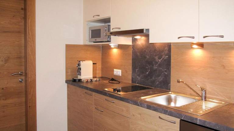 Die Ferienwohnung ist mit einem Satelliten-TV sowie einem geräumigen Wohnzimmer ausgestattet. Die Küche bietet einen Kühlschrank, Geschirrspüler, Mikrowelle und Kaffeemaschine, was die Selbstversorgung erleichtert.