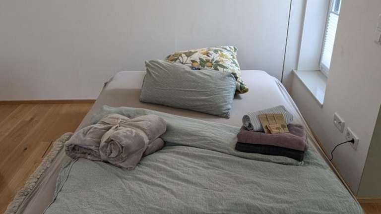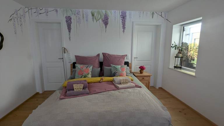 Die Ferienwohnung verfügt über ein Schlafzimmer, eine Küche mit einem Kühlschrank und einem Geschirrspüler sowie ein Badezimmer mit Dusche und kostenlosen Pflegeprodukten. Handtücher und Bettwäsche werden bereitgestellt. Zur weiteren Ausstattung gehört eine Waschmaschine.