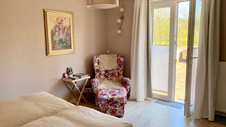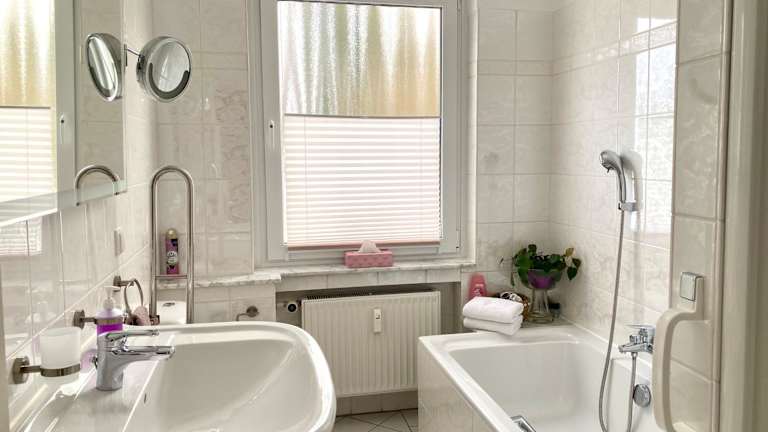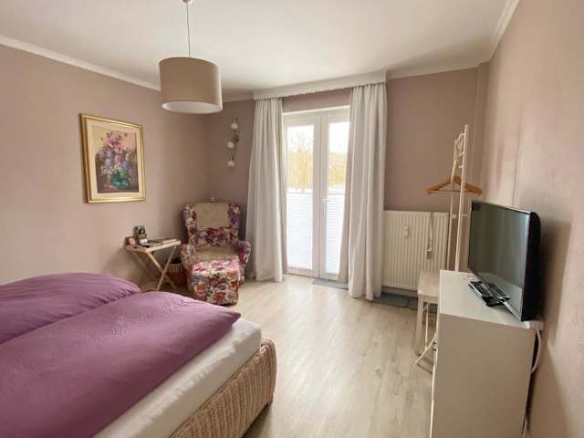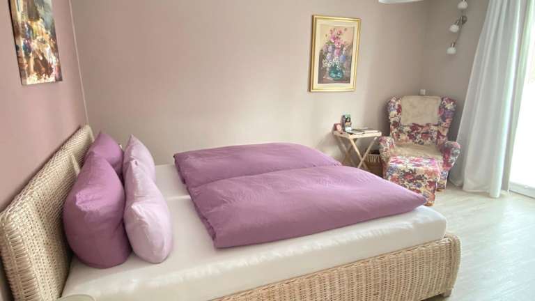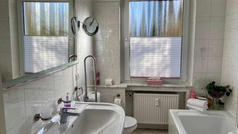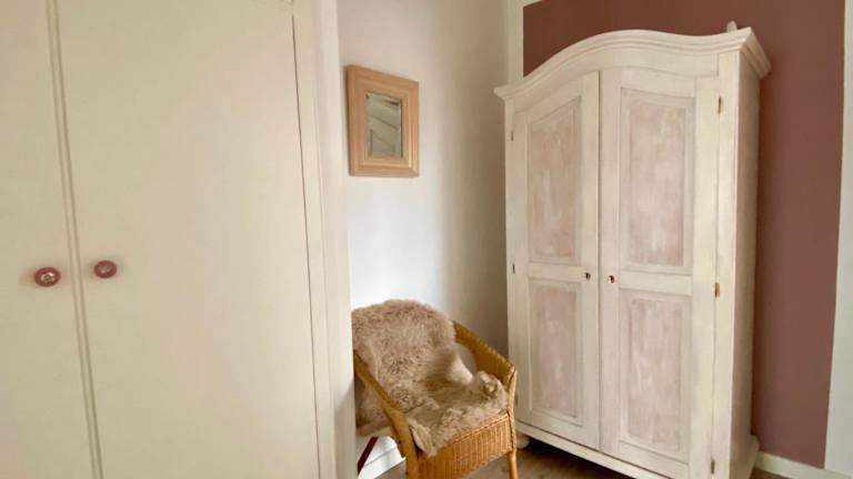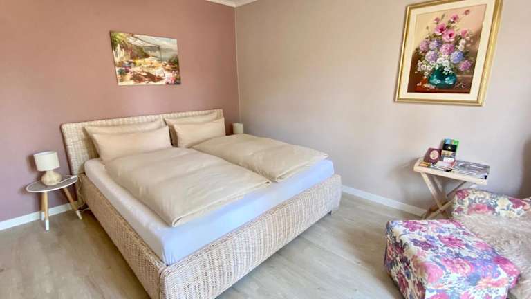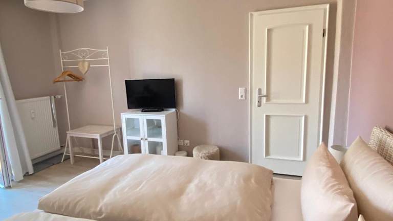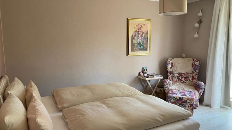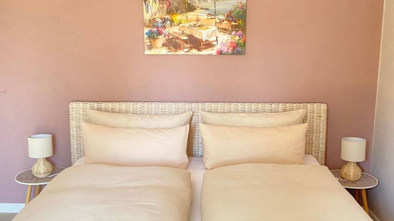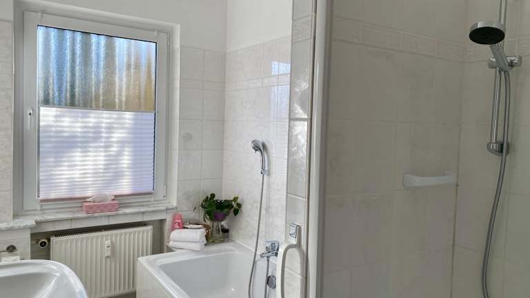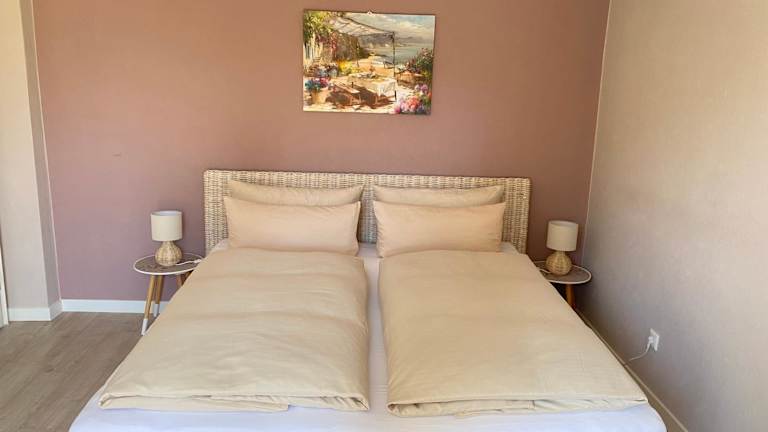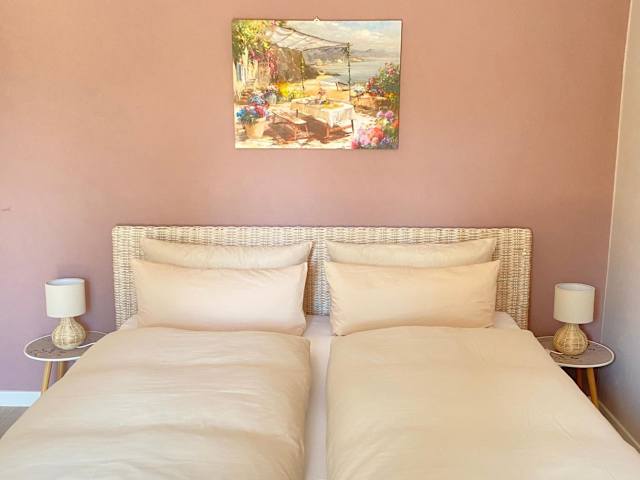 Die Ferienwohnung umfasst ein Schlafzimmer und ein Badezimmer, das mit einer Dusche, einer Badewanne und einem Haartrockner ausgestattet ist. Die Wohnung verfügt über Parkettböden und bietet Handtücher sowie Bettwäsche für die Gäste.