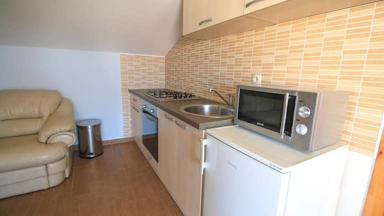 Das klimatisierte Apartment Ana besteht aus einem gemütlichen Schlafzimmer, einem geräumigen Wohnzimmer und einer voll ausgestatteten Küche. Hier finden Sie alles, was Sie für einen komfortablen Aufenthalt benötigen, einschließlich eines Kühlschranks und einer Kaffeemaschine. Das Badezimmer verfügt über eine Dusche und kostenlose Pflegeprodukte. Handtücher und Bettwäsche werden Ihnen zur Verfügung gestellt, sodass Sie sich um nichts kümmern müssen.