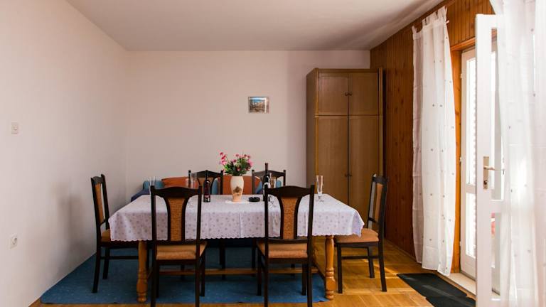 Das Apartment Angelina bietet eine Selbstversorger-Unterkunft, so dass die Gäste ihre eigenen Mahlzeiten in der voll ausgestatteten Küche zubereiten können. Es gibt jedoch auch eine Vielzahl von Restaurants und Cafés in der Nähe, in denen Sie lokale Spezialitäten und internationale Gerichte genießen können.