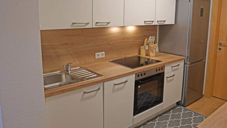 Die Ferienwohnung mit 2 Schlafzimmern ist mit einem Wohnzimmer ausgestattet, das einen TV mit Satellitenkanälen bietet. Die voll ausgestattete Küche umfasst einen Kühlschrank und einen Geschirrspüler. Ein Badezimmer mit einer Badewanne ist ebenfalls vorhanden.