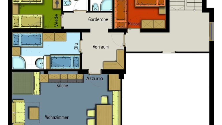 Das Appartement Aqua bietet geräumige und komfortable Unterkünfte mit einer voll ausgestatteten Küche, in der Sie Ihre eigenen Mahlzeiten zubereiten können. Das Wohnzimmer verfügt über einen gemütlichen Kachelofen und einen Sitzbereich, in dem Sie sich entspannen können. Jedes Zimmer verfügt über ein eigenes Badezimmer und einen Fernseher. WLAN ist im gesamten Gebäude kostenlos verfügbar.