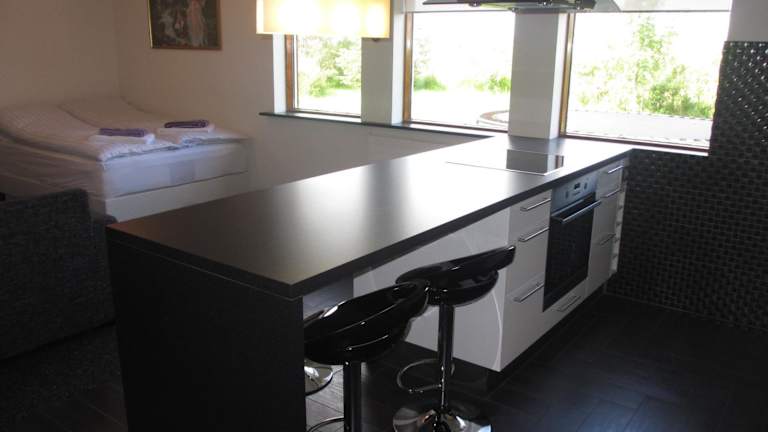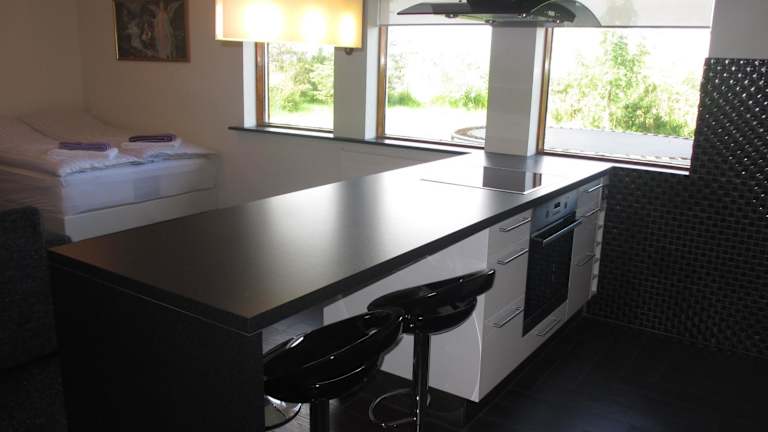 Das Ártún Apartment bietet Ihnen ein helles und modernes Ambiente. Das Apartment verfügt über ein Wohnzimmer mit einem gemütlichen Sitzbereich und einem großen Flachbild-TV. Die voll ausgestattete Küche ermöglicht es Ihnen, Ihre eigenen Mahlzeiten zuzubereiten. Das Badezimmer ist komplett gefliest und mit einer Dusche, einem Haartrockner und kostenfreien Pflegeprodukten ausgestattet.