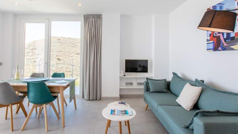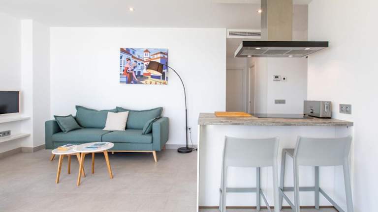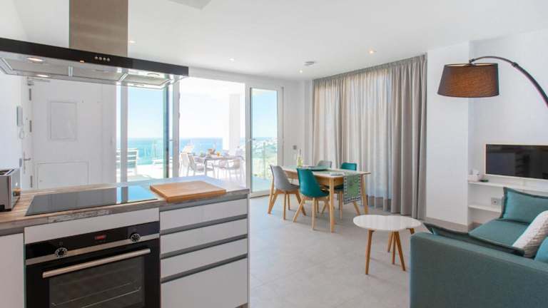 Die Ferienwohnung besteht aus 2 Schlafzimmern und bietet eine gut ausgestattete Küche mit Kühlschrank, Geschirrspüler und Ofen. Es gibt zwei Badezimmer mit Dusche und Haartrockner. Eine Terrasse mit Meerblick sowie ein TV sind ebenfalls vorhanden. Haustiere sind nicht gestattet.