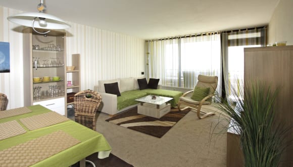 Das Ferienapartment besticht durch sein gemütliches Dekor aus Holz und bietet ein helles Schlafzimmer sowie eine voll ausgestattete Küche. Das Wohnzimmer ist mit Parkett und einem Flachbild-TV ausgestattet, um Ihnen einen angenehmen Aufenthalt zu ermöglichen. Jedes Apartment verfügt außerdem über einen Südbalkon mit Sitzgelegenheiten, von dem aus Sie den Panoramablick auf die Alpen genießen können. WLAN ist auf Anfrage verfügbar.