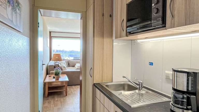 Die Ferienwohnung verfügt über ein Schlafzimmer sowie ein Wohnzimmer, das mit einem TV mit Satellitenkanälen ausgestattet ist. Eine voll ausgestattete Küchenzeile beinhaltet einen Kühlschrank und eine Mikrowelle. Das Badezimmer ist mit einer Dusche eingerichtet. Bettwäsche, Handtücher und Wäsche werden gemäß den Richtlinien der örtlichen Behörden gewaschen.