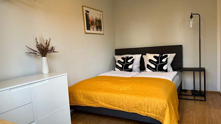 Die Ferienwohnung besteht aus einem Schlafzimmer, einem Wohnzimmer und einer gut ausgestatteten Küchenzeile, die mit einem Kühlschrank und einem Ofen ausgestattet ist. Handtücher und Bettwäsche werden zur Verfügung gestellt. Zudem gibt es eine Terrasse, die zur Erholung einlädt.