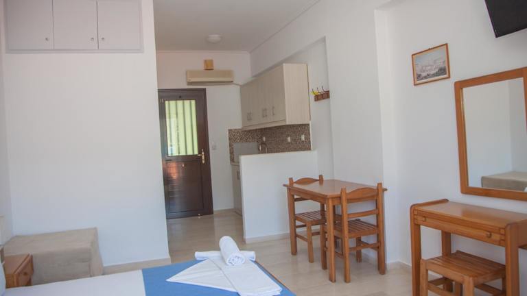 Die klimatisierten Studios verfügen über eine moderne Ausstattung und bieten kostenfreies WLAN. Jedes Studio ist mit einem Flachbild-TV ausgestattet und verfügt über eine Küche mit einem Kühlschrank und einem Kochfeld. Das private Badezimmer ist mit einem Haartrockner ausgestattet und Bettwäsche wird gestellt.