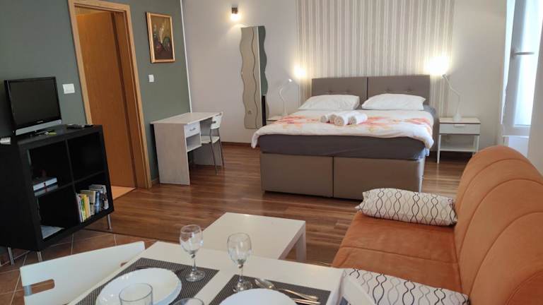 Verbringen Sie Ihren Aufenthalt im Apartment Casa Nova im Herzen von Rovinj und genießen Sie den Komfort einer klimatisierten Unterkunft mit kostenfreiem WLAN. Die zentrale Lage ermöglicht es Ihnen, die belebte Straße Carrera in nur wenigen Schritten zu erreichen. Die Unterkunft bietet sowohl Studios als auch Apartments mit 2 Schlafzimmern, die jeweils über einen TV und einen gemütlichen Sitzbereich verfügen. Zusätzlich finden Sie in jeder Unterkunft ein eigenes Badezimmer mit Badewanne oder Dusche und einen Haartrockner. Eine komplett ausgestattete Küche mit Kühlschrank, Kochplatten und Wasserkocher ist ebenfalls vorhanden. Geschäfte und Restaurants befinden sich in unmittelbarer Nähe. Das Apartment Casa Nova ist der ideale Ausgangspunkt, um Rovinj zu erkunden und die umliegende Gegend zu erkunden.