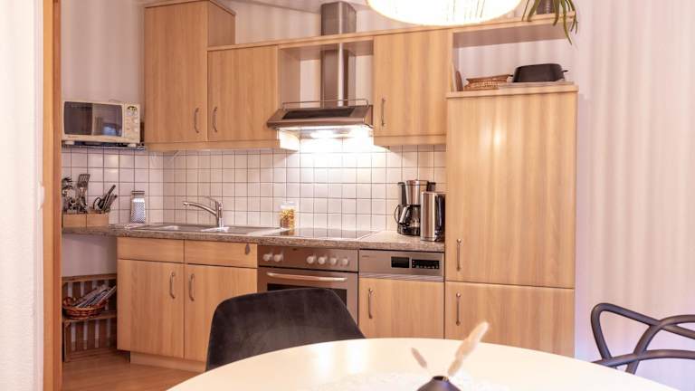 Die Ferienwohnung umfasst ein Schlafzimmer, ein Wohnzimmer und ist mit einem Flachbild-TV sowie einer gut ausgestatteten Küche mit Kühlschrank und Geschirrspüler versehen. Es gibt zudem ein Badezimmer mit Dusche. Handtücher und Bettwäsche werden bereitgestellt.